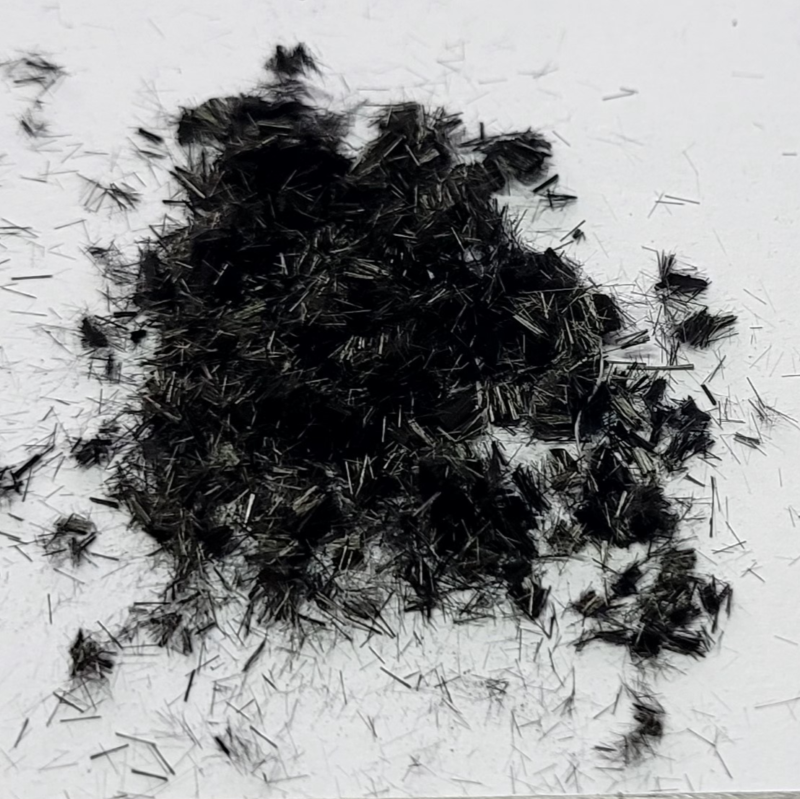 Precision-chopped PAN-based short carbon fiber available in 3mm, 6mm, and 12mm lengths.